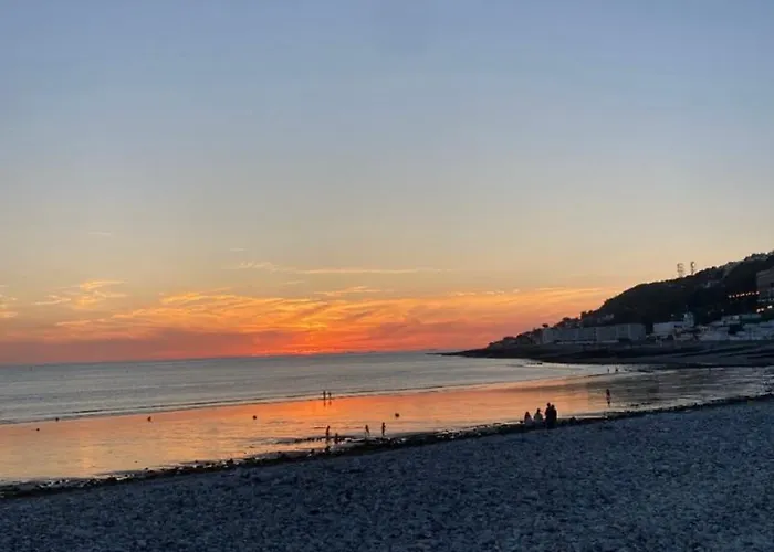 Das Charmant Appartement Vue Mer bietet seinen Gästen die Annehmlichkeiten von Selbstversorgern, wie eine voll ausgestattete Küche und einen Essbereich im Freien. Der Le Havre Octeville-Flughafen ist eine 15-minütige Fahrt entfernt.